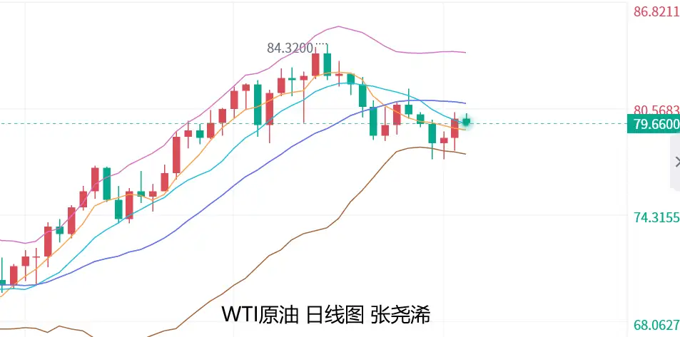 下方关注79.30及79.10美元/桶附近支撑;上方关注80.35及80.90美元/桶附近阻力;