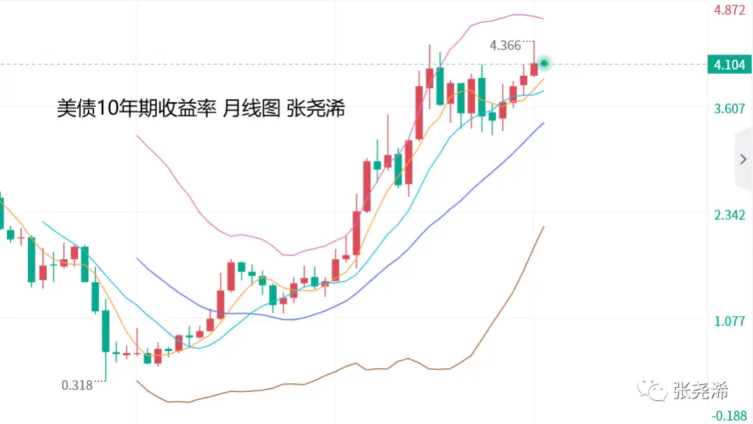 不过,整体来看,美元指数仍处于中轨上方,看涨趋势仍然存在,在未明显破位中轨支撑前,仍有继续看涨的前景,将会限制金价反弹动力。虽然美债10年期短期偏向回落走低,但日图回落动力减弱,或有回升迹象,月图仍处于较明显且长远的看涨,因而对于金价提振也将有限。金价近日后市偏向震荡或走低的概率仍然很大。
