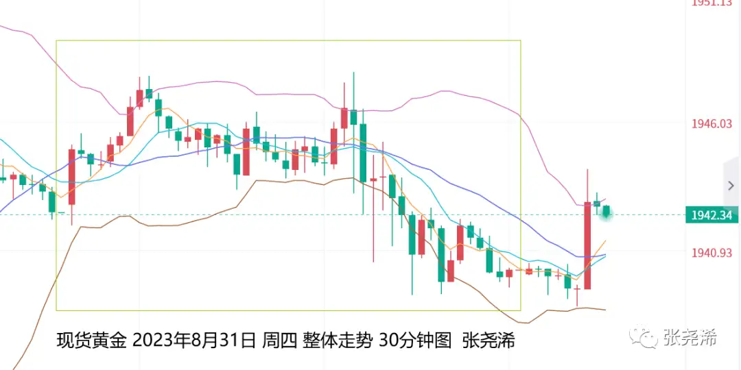 上交易日周四(8月31日):国际现货黄金/伦敦金冲高回落收取倒垂阴线,且并未刷新前日高点,多头动力显示减弱,短期或将陷入震荡,或再度冲击100日均线目标阻力后,转明显遇阻行情。