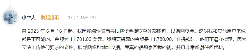 你还记得你第一次在交易平台提现时,平台要你提供了哪些资料吗?最近,一位Fx Winning的用户投诉平台称:“因为无法上传他们要求的文件,包括:脸部图像和地址、收据而无法提现,我真的很想拿回我的钱”。