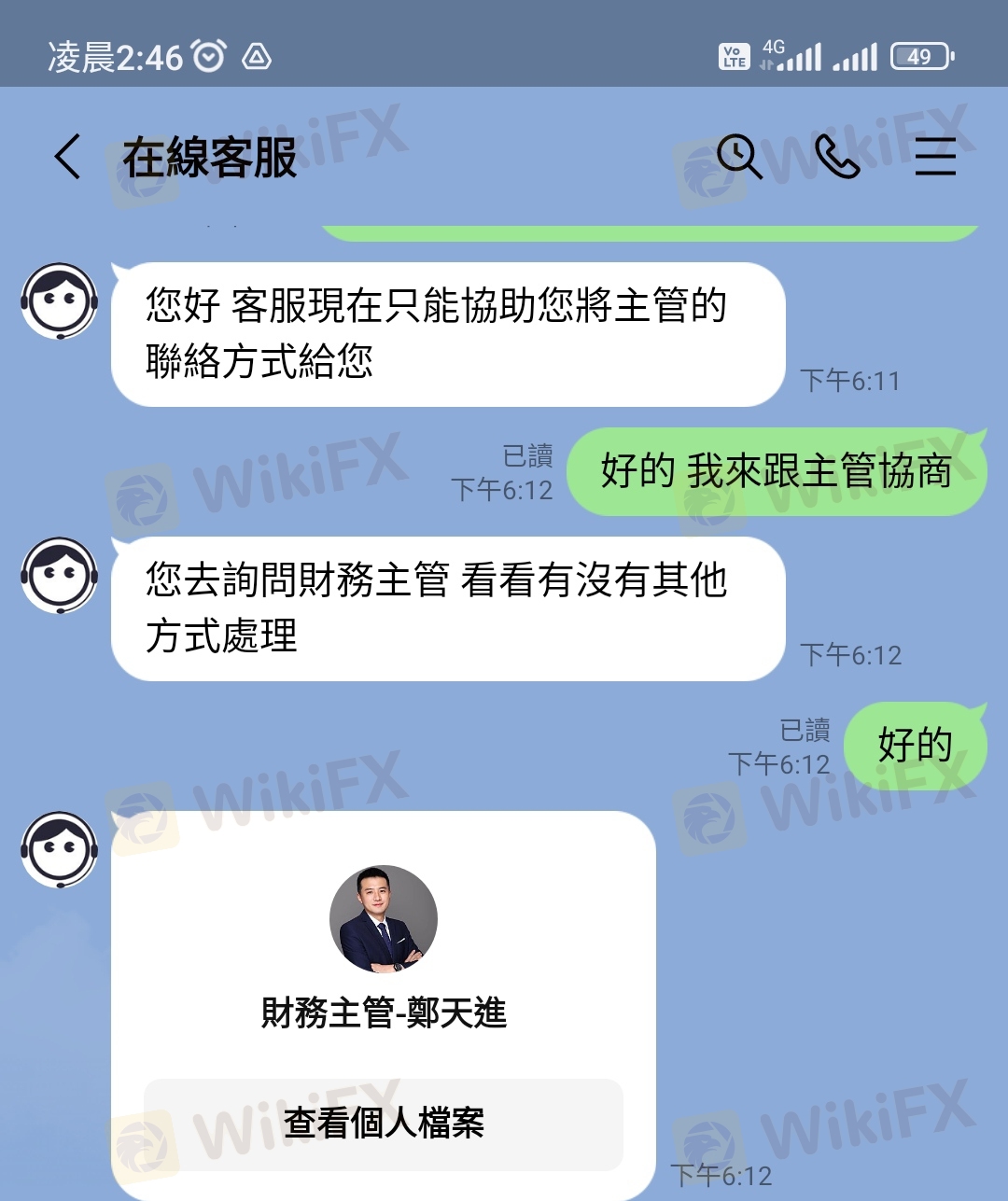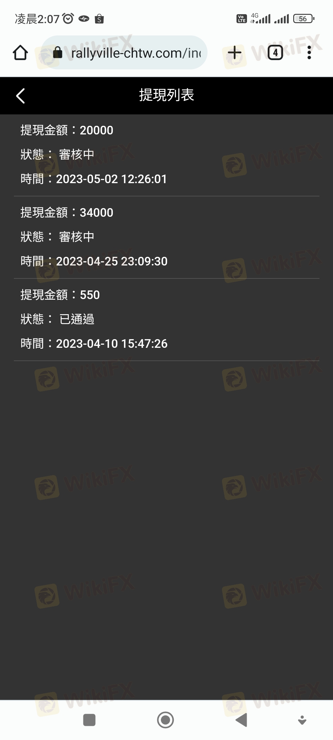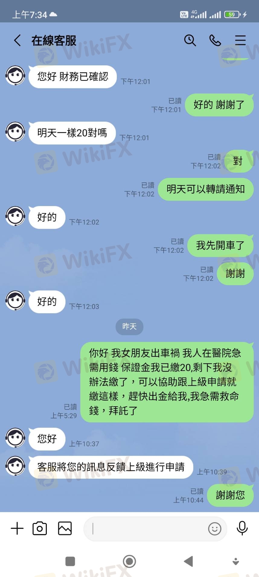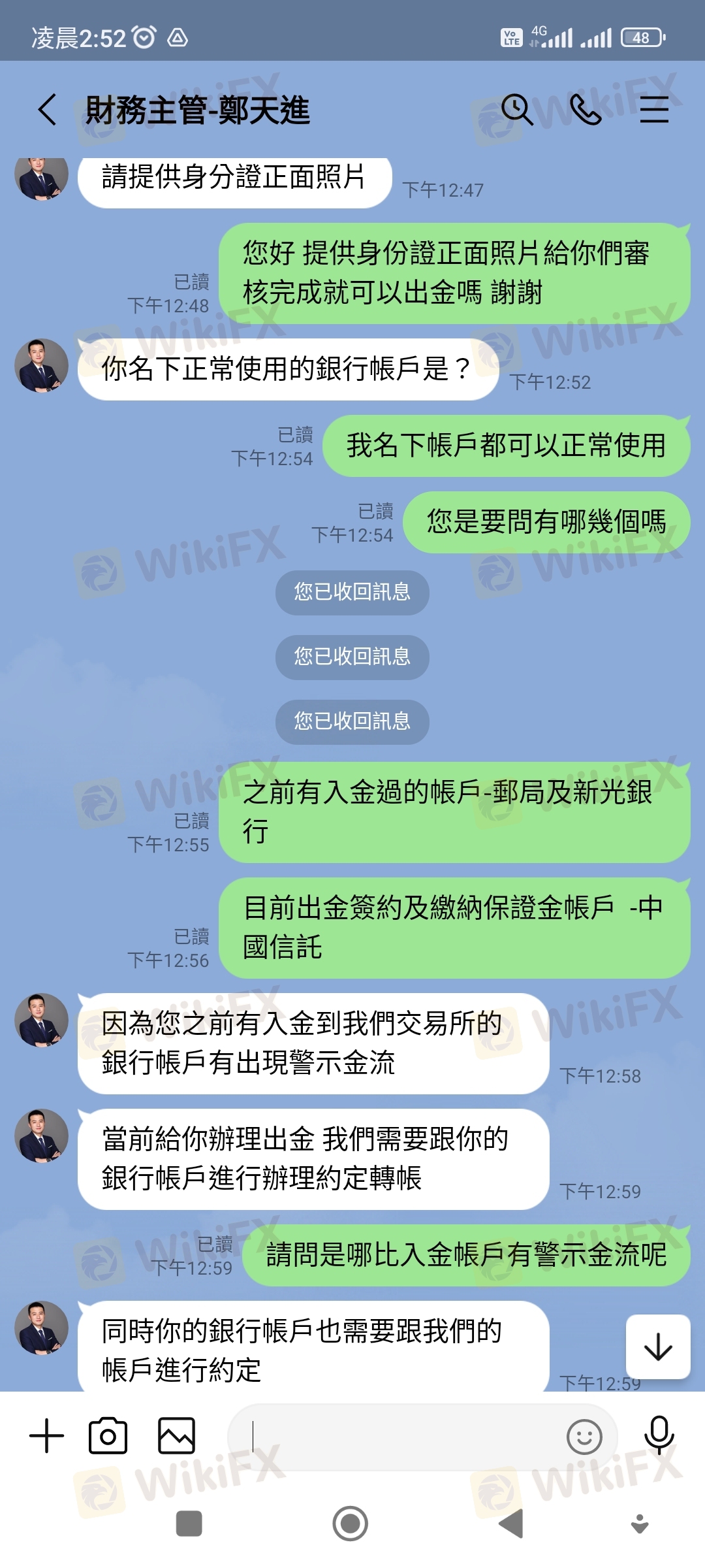 整件事情於今年3月21日,本人在某交友網站認識一位網友,後來聊到投資外匯,因本人原本就有投資的習慣,該名網友就推薦我在這賴利維爾平台下單。 這平台是以美元計價,新台幣及美元比例為1:30,一開始我只是投入少少的400美元,一開始就有獲利,後來投入的資金也越來越多,該名網友跟我說可以申請VIP客戶,他說申請成為VIP客戶,可有提領出金免手續費的優惠。 我就去跟該平台客服申請成為VIP會員,客服只跟我說申請期間不能出金不能取消,我覺得無所謂就答應申請,但在申請隔天該平台客服才告知我要我再入金20000美元才能申請成功,我立刻跟客服反映我沒有那麼大筆資金請幫我取消申請,該平台不願意幫我取消,只要我自己想辦法,不然就是無法出金。因為我銀行帳戶有月額度及每日轉帳限制,我就去跟客服要求這20000美元入金我有部分要請別人從他的帳戶轉入該平台提供的帳號,該平台也沒意見可以,就這樣我跟我們就轉入20000美金後,第一次也是唯一一次順利出金550美元。 後來我又繼續投入大筆資金大約有70萬台幣進行外匯買賣,在4/25提出要出金34000美元,隔日就被該平台告知我在洗錢,要我必須在48小時內繳納60萬台幣保證金,否則帳戶會被凍結,我當然覺得莫名其妙,跟該平台多次反映都無效,最後只好被逼同意繳納保證金,但因為我個人帳戶轉帳有額度限制,就一天轉20萬台幣後給該平台,繳納20萬台幣後因女友出事,急需現金,我再次跟該平台反應保證金我也繳20萬台幣了,我急需救命金,請該平台即刻出金,該平台就拒絕了,經多次跟該平台客服反應沒結果,最後客服把我轉給他們的財務主管,說要我跟主管協商,他們的財務主管要求我要提供有照片證件、帳戶封面、綁定約定帳戶及我的網銀帳密給他們登入審核,我拒絕並要求先退還保證金29萬,該平台就威脅我不協商配合,後結果自負,,我沒辦法也只能循法律途徑解決並將整件事曝光於外匯天眼。 我目前在該平台總共還有94012美元及繳納的保證金20萬台幣被無故扣留不出金,折合台幣大約300多萬,我選擇把整件事情曝光讓廣大投資人知悉及認清該平台,整件事情,就針對該平台無故說我洗錢,又提不出我洗錢證據,便以此為藉口不願出金,我也表示,當初也是該平台同意我的身及VIP資金可以部份由朋友帳戶匯入,匯入後也未告知有任何異常,遂在我要求部分出金時阻撓,我也說明我願意提供所有匯入帳號資料及接受警方調查,該平台人不願出金,還,很明顯地為黑平台