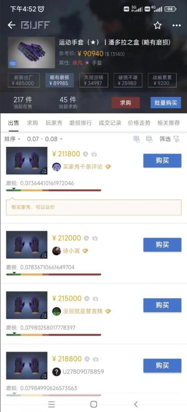 5月8日,一个陌生人在评论区评论“潘多拉真好看”,还附上了自己的微信号。程先生添加了对方好友,对方表示平台交易需要1万多元的手续费,可以走线下交易,省下这笔钱。于是双方约定以平台审核的价值减去手续费,最终以206800的价格通过银行卡交易。
