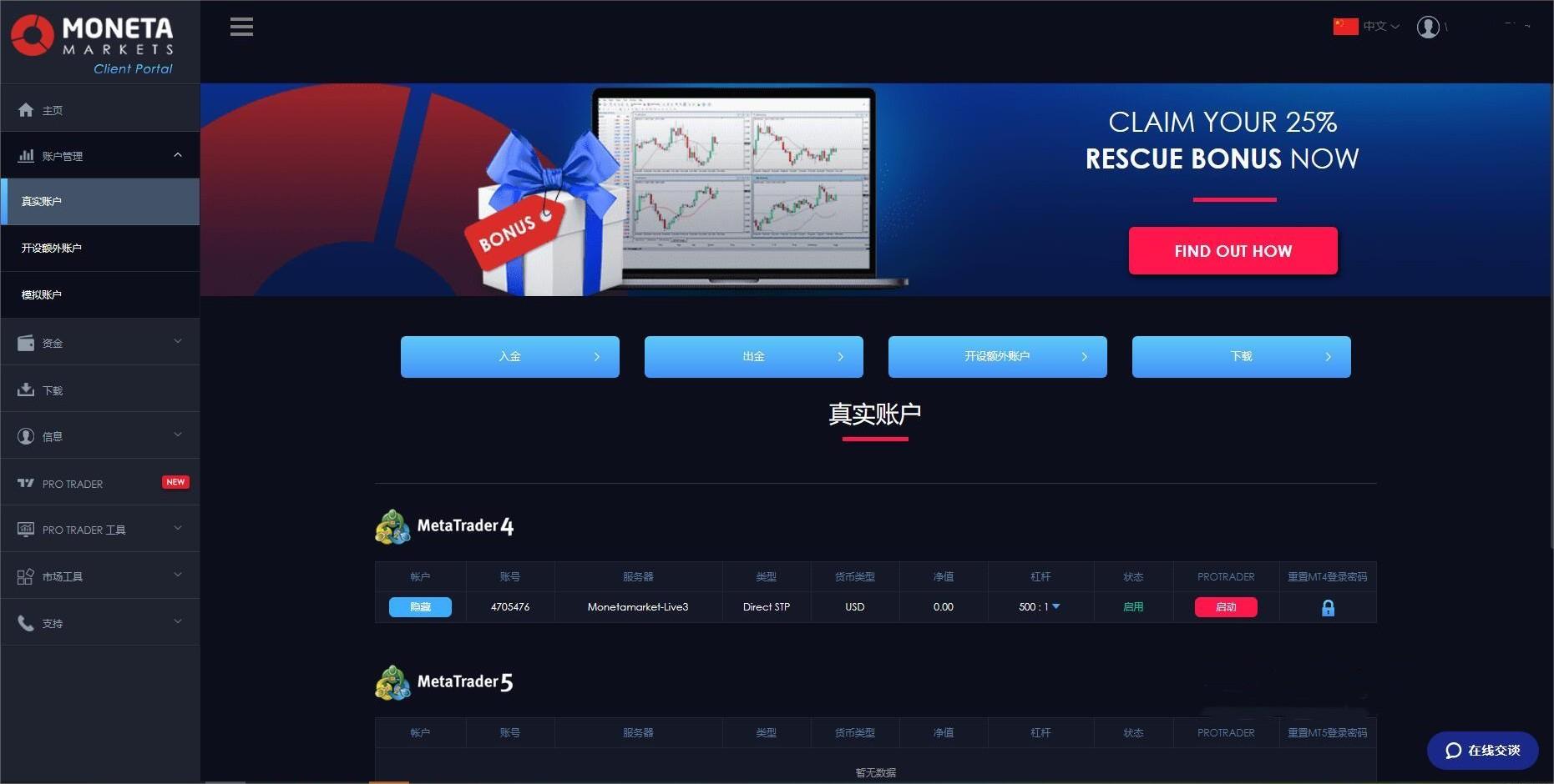 据投资者A反馈,他通过正规渠道下载并安装了Moneta Markets的相关交易软件,交易了一段时间之后,就在申请出金时出现了状况。平台先以充值资金不是整数为由拒绝出金(这个理由很奇葩吧?!)而后又说反复操作取消出金,需要缴纳本金的30%才能出金。