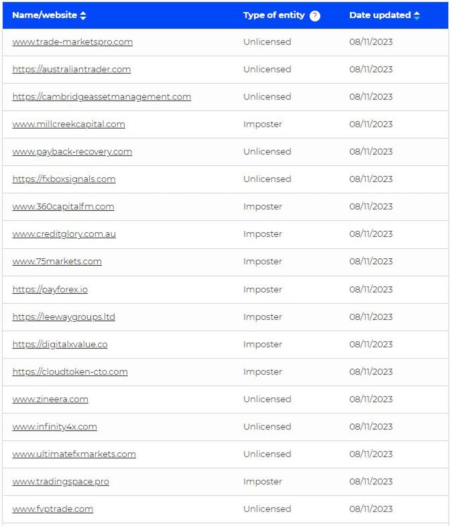 澳大利亚监管机构已经发布了一份名为“您不应与之打交道的公司”的名单,其中仅包含无证公司的名称。新的“投资者警报名单”以两种方式对实体进行分类:未经许可的实体和冒名顶替的实体。它还从之前的列表中添加了1,256个未经许可的实体,并将它们标记为“未经许可(遗留)”。