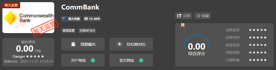 金融市场的稳定与诚信密切相关,而投资者在选择经纪商时往往倚重于平台的信誉和表现。然而,近期在爱汇平台上,关于CommBank经纪商的问题引发了极大的关注。根据了解,该经纪商的评分仅为1.1分,且遭到了欺诈无辜投资者的指责,引发了投资者权益方面的严重担忧。