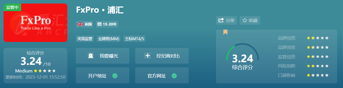 FxPro · 浦汇作为外汇交易领域的重要参与者,一直以来吸引着众多投资者。然而,这次低分评价引发了人们对其经营和服务质量的质疑。在外汇交易领域,评价分数往往能够反映出经纪商的交易透明度、资金安全性、客户支持等方面的情况。因此,这次低分评价可能会对FxPro