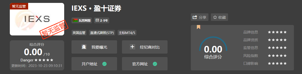 根据爱汇查数据,盈十证券IEXS成立7年,全球排名782,安全评分60分,仍存在一定风险。投资者反馈显示,IEXS平台在斑马投诉上已有17条投诉,涉及严重滑点、限制出金、无理由封客户账户等问题。