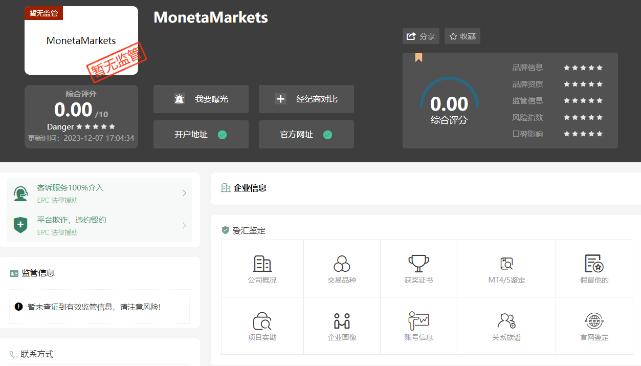 爱汇查具备实时舆情监控功能,能够第一时间捕捉投资者对MonetaMarkets亿汇外汇等平台的投诉和曝光信息。在爱汇查的“曝光台”版块,投资者可以看到大量关于MonetaMarkets亿汇外汇无法出金、恶意拖延、客服失联等真实案例。这些案例不仅为投资者提供了宝贵的参考,也促使平台重视投资者的问题,提高行业的透明度。例如,多位投资者在爱汇查曝光了MonetaMarkets亿汇外汇的恶劣行为后,引起了更多投资者的关注和警惕,避免了更多人陷入同样的骗局。