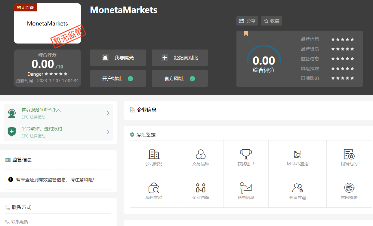 监管缺失是Moneta Markets亿汇外汇能够肆意妄为的关键因素。虽然该平台宣称受到多个机构的监管,但深入调查发现,其监管存在诸多虚假或超限经营的情况。例如,南非FSCA仅允许其从事中介业务,无权直接参与交易;其香港关联公司Moneta Markets Limited未在SFC注册,存在监管真空地带。这意味着该平台在实际运营中缺乏有效的监管约束,可以肆意妄为,无视投资者的权益。