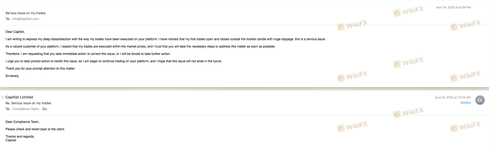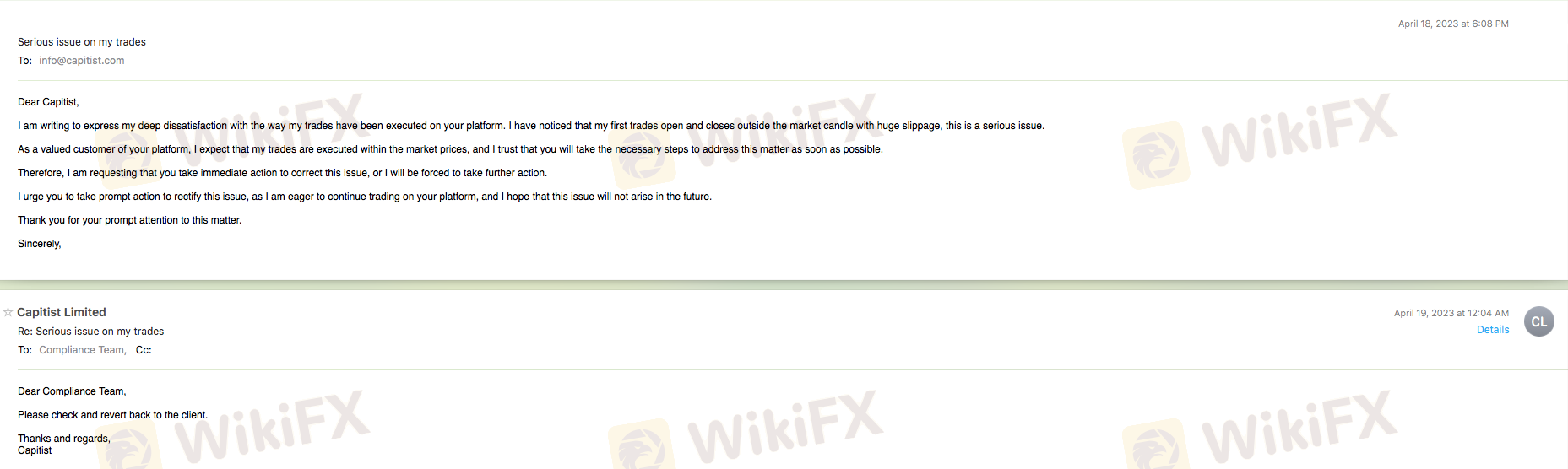 不要让自己认为仅仅因为他们提供帮助,他们就受到监管,这是一个优秀和诚实交易商。这个错。 Capitist 被证明是一个黑交易商。通过加密货币存入资金,在我进行第一笔交易后,我注意到他们对订单的操纵,他们在市场蜡线外开仓交易,滑点严重。与他们联系后,他们会通过电子邮件回复他们的合规人员,而合规人员从未对此类操纵做出任何解释。永远不要在这里存款。