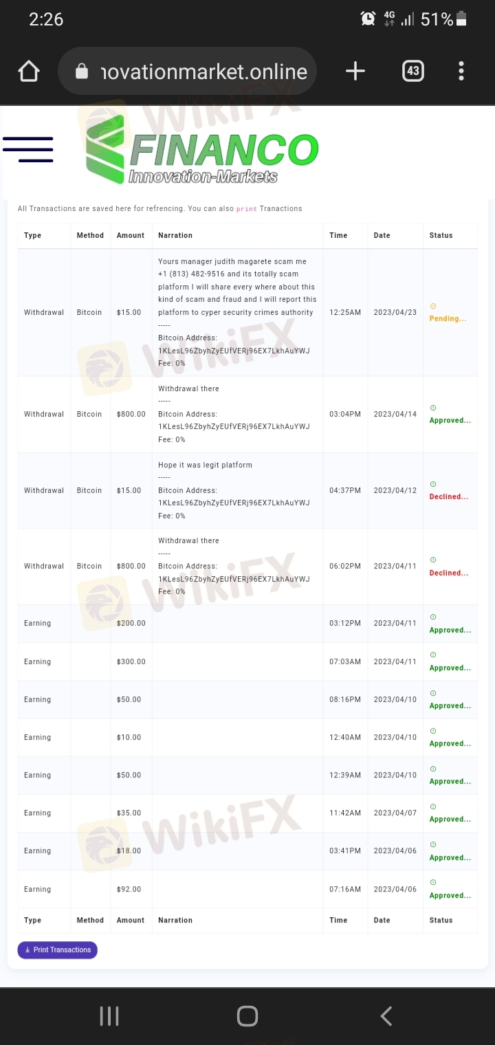 SCAM ALERT [26a0][fe0f] [d83d][dce2] https://financo-innovationmarket.online https://www.facebook.com/happiness.effiong.3956 This woman allegedly named "judith magarete" she's is running different groups on whatsapp on the name of financo-innovationmarket crypto trading signals. She is offers you to get the package which is above 200 usd and she will invest this money and trade she will give you profit on this in three days . Which is a totally lie.she is scamming and more than 100 people which are in her different groups. Guys please do not give her single usd for investment or signal, she is totally fraud. If anyone is in his group amd she have link to join to financo-innovationmarket.online kindly i share here in public so i can alert everyone else. Thank you