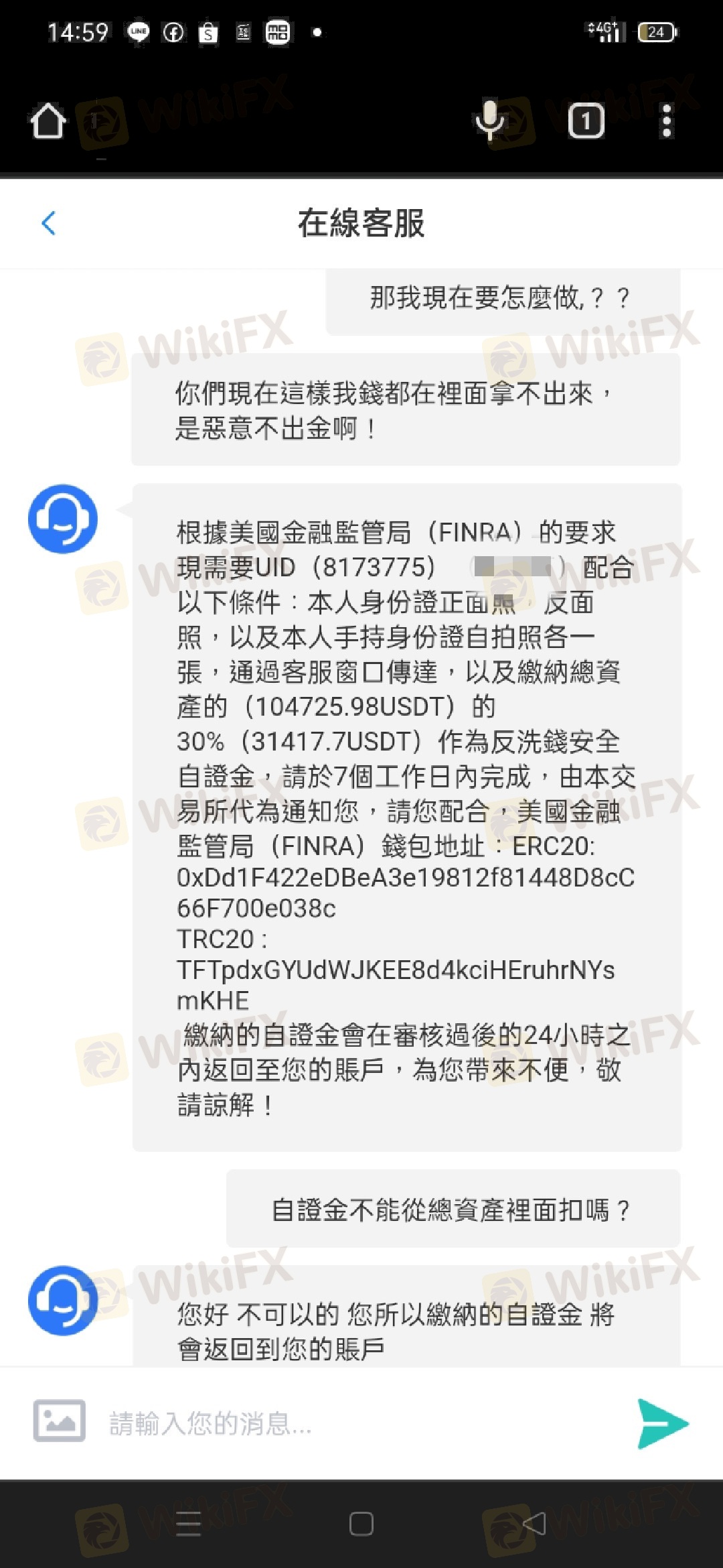 平台不出金 客服一直讓各種理由繳費