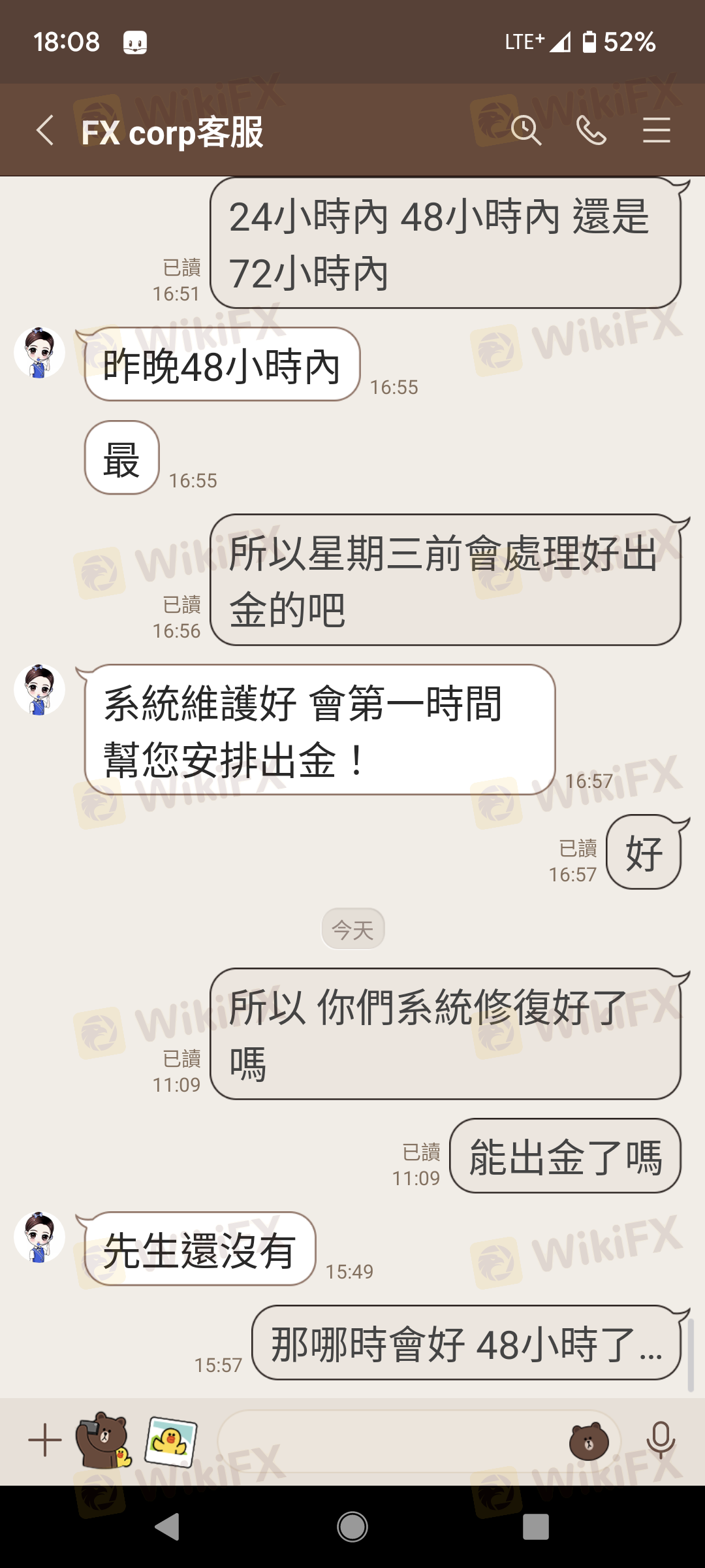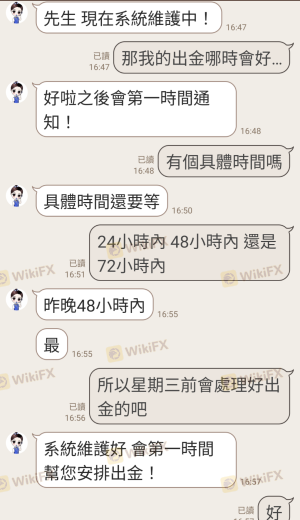 此平台疑似仿冒澳洲 fx corp平台 先是以假冒澳洲fx corp平台的監管證使人相信 而後派人誘導入金後 第一次小額出金成功 而後大額入金後 收益再也無法出金 詢問疑似仿冒的客服人員表示平台維修中 48小時即會完成出金 但48小時後卻再也不聞不問 甚至與當時入金的態度差異甚大 中間一度會刪除使用者帳號