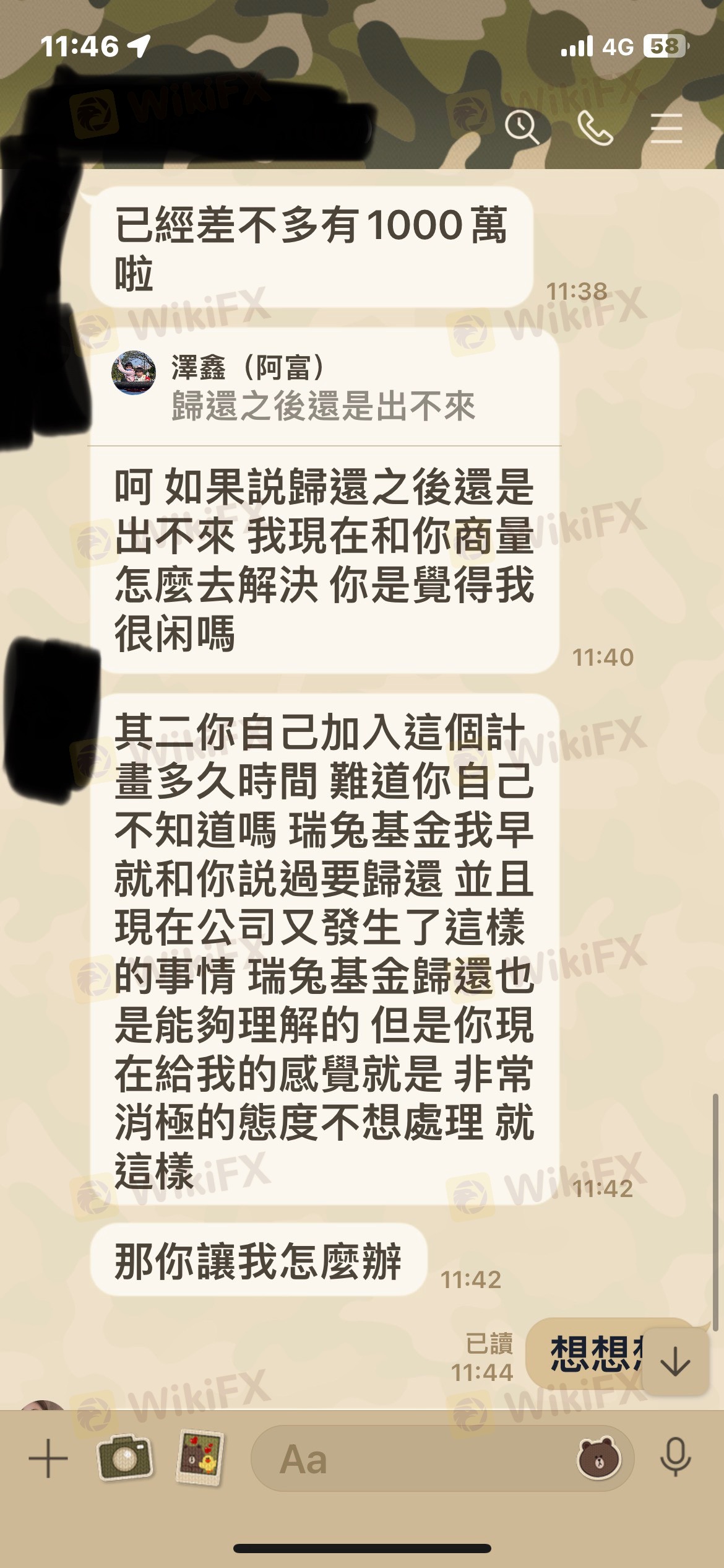 一直跟我說要先歸還瑞兔基金才可以提領,如果沒歸還瑞兔基金就無法提領