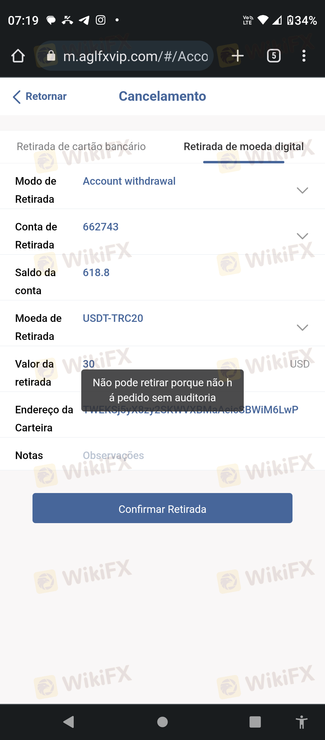 您投资然后未能提取资金。