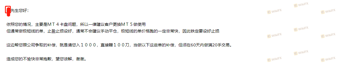 时隔半年,滑点卡顿造成的亏损至今没有处理,隔三差五打电话让我们入金交易 平台造成的滑点卡顿问题没有处理 打电话又说是行情的问题 我交易的问题 为自己的问题找理由不觉得可耻吗 你有什么理由还要我们回来交易 20个点差 进出场瞬间三四倍不说 盈利出场也能给我卡一分钟左右出来 大家谨慎选择
