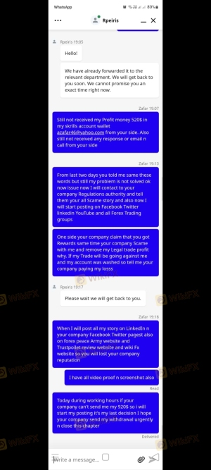 请公布他们为黑交易商,以便人们了解现实。尊敬的先生/女士,我是为了提供我对M4Markets.com交易商的评论。我的名字是zafar ali,我在M4Markets.com 与mt5 a/c no.3559797。我想提请您注意我的帐户发生的一件事,这让我相信M4Markets.com 是黑交易商。 5 月8 日,我将400 美元存入我的账户,并开设了1000 股under armour ua 美股的卖出交易。我赚了519.78 美元,当我要求提取我的利润时, M4Markets .com 取消了我所有的利润,并给我发电子邮件说我确实滥用了负余额保护。我不明白基于投机或新闻的交易如何被视为欺诈。我赚了,当我要的时候,他们拒绝给我。如果我赚钱,他们拒绝给我,但如果我在交易中赔钱,他们似乎不关心或要求。他们让我只退还我的本金。当您获利时,他们将享受您的利润。如果你赔钱,他们会享受损失的钱,因为他们不投资到真实市场。我想警告所有零售交易者在交易时要谨慎M4Markets.com。看来他们运行的是未连接到交易所的独立服务器。我要求所有零售交易商从M4Markets.com 宜早不宜迟,因为即使您赚了钱,您最终也会损失辛苦赚来的钱。非常感谢您帮助传播有关此事件的消息,以免其他人将钱输给这个黑交易商。我已将屏幕截图、校样、视频和屏幕附加到此电子邮件。本周我将与我的律师会面,根据他们的规定对该交易所采取行动。我希望你能认真对待我的投诉并采取必要的行动M4Markets.com 以防止其他交易者将来遇到类似问题。