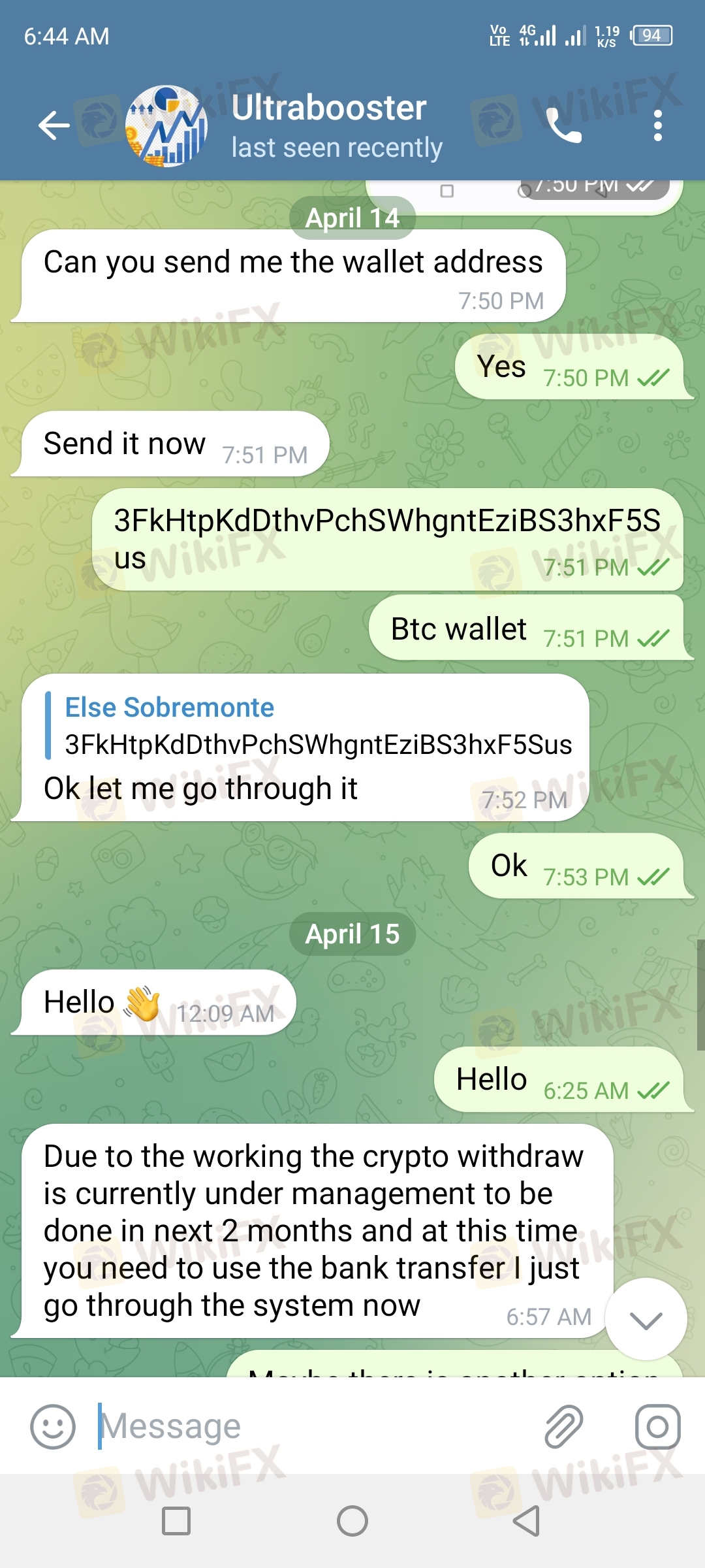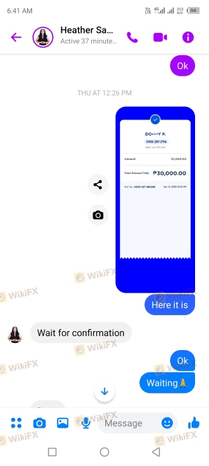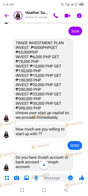 起初我入金了5000 php的会员费,2天后他们要求50,000 php的验证账户费用,但我只发送30,000 php 这样我就可以提取我的利润现在这里是提款流程首先我选择了加密提款流程但遗憾的是,它总是无法解决,他们说这是2mos 的维护,他们说要进行银行提款,所以当我试图提取金额时,它要求提供COT 代码..然后COT 代码花费15,000 php..所以没有支付代码...我认为这是骗局,因为现在无法在Facebook 和电报中联系到Samantha Heather,我们所有的谈话都被删除,包括上述经理。