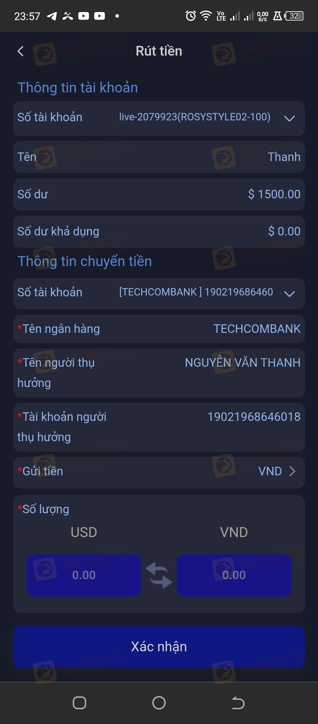 我在交易所开设的账户中存入了 1,500 美元 PROFIT CINDA LIMITED2023 年 4 月 10 日。 2023年4月14日,我下了提款单,在提款历史上看到订单被批准了,但是钱没有转到我的银行账户。我联系了交易所的客服人员,他们否认责任并指责兑换银行。但事实是他们故意不执行我的取款指令并拿走了我的钱。现在他们的客户服务人员已经将我从 zalo 中删除并阻止了与我的联系。清除 PROFIT CINDA LIMITED骗取客户的钱。期待您的帮助,非常感谢