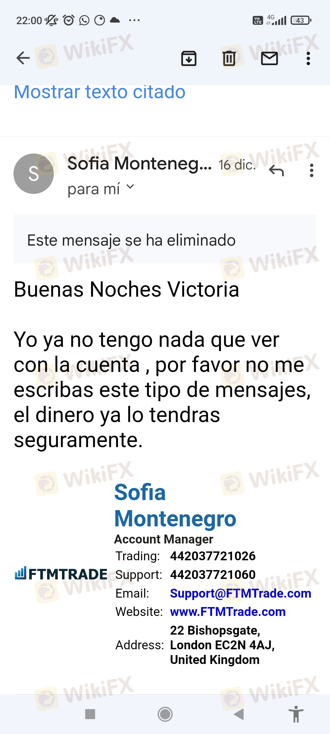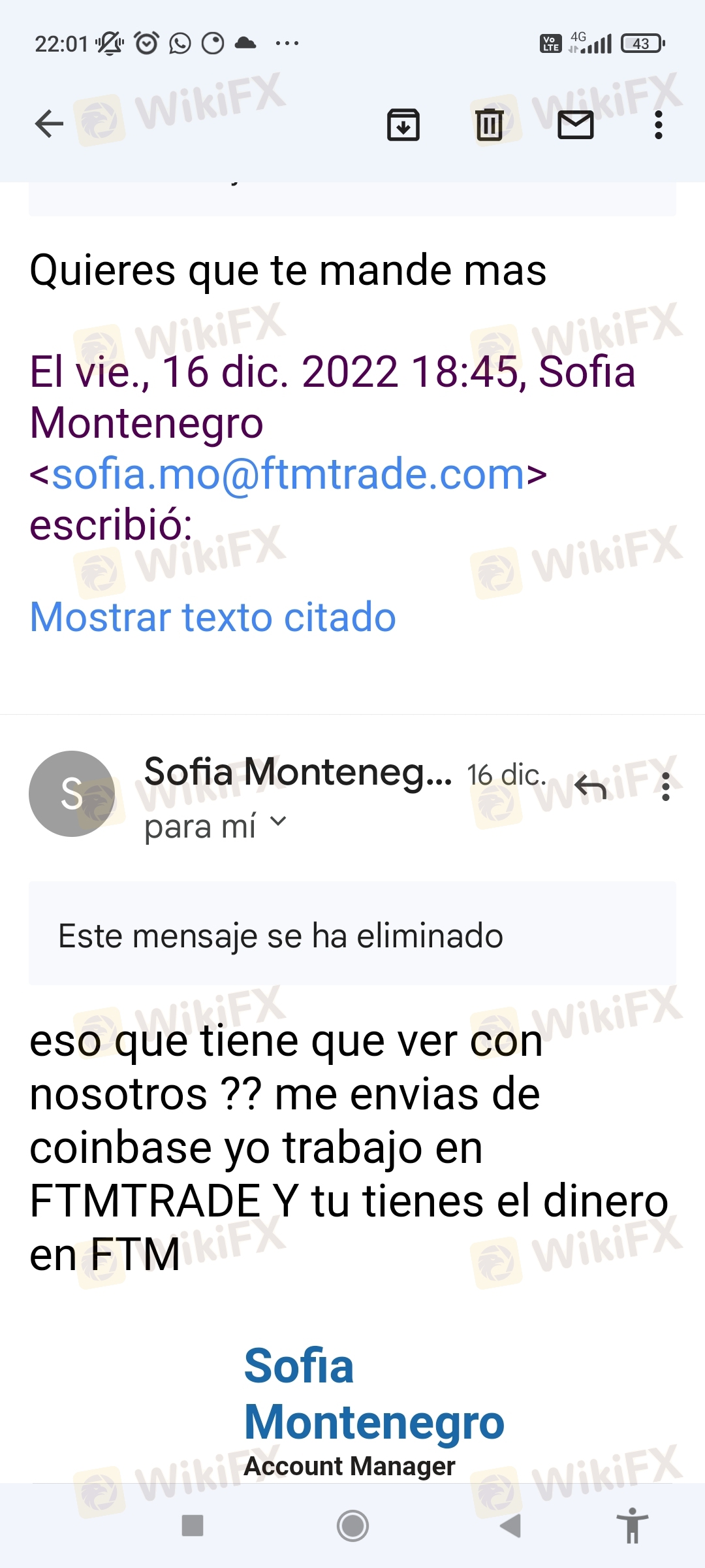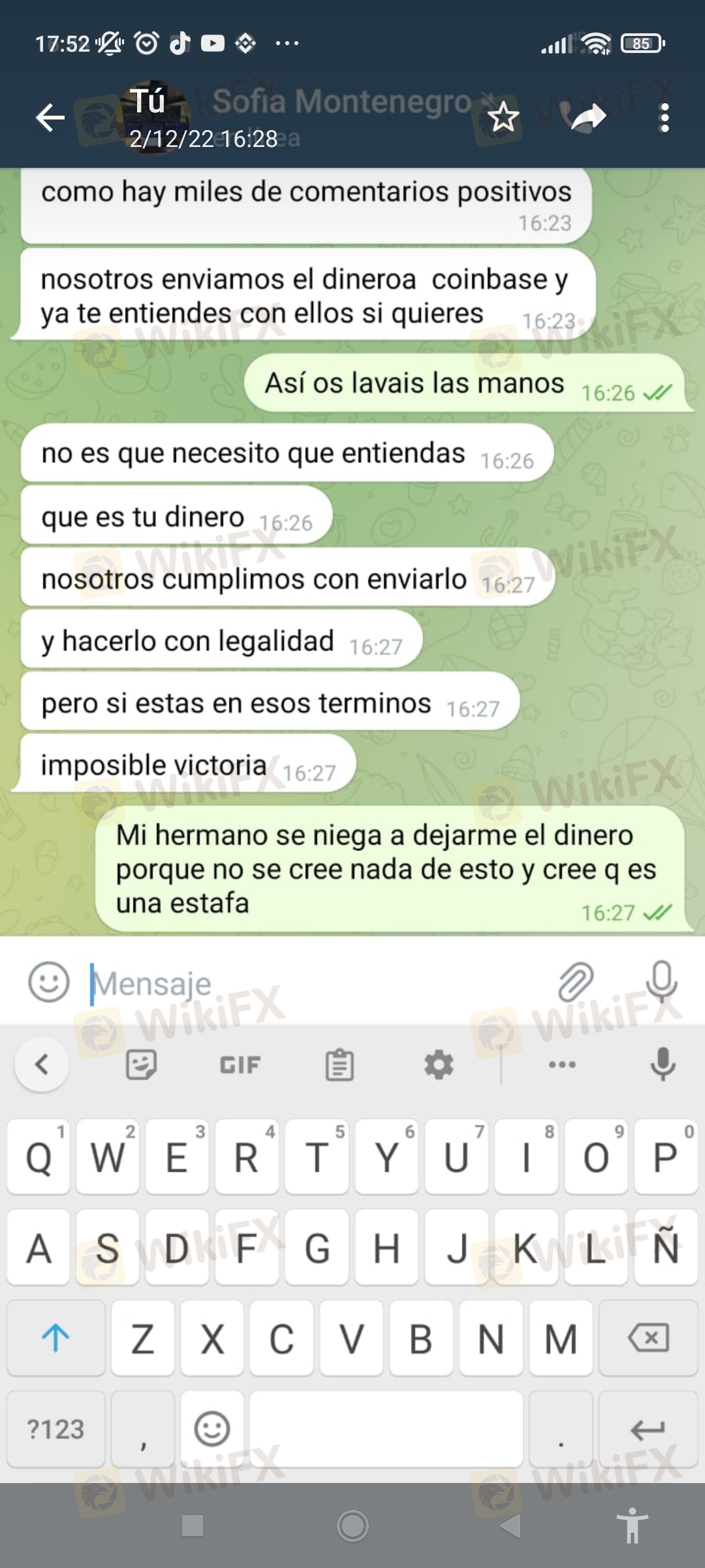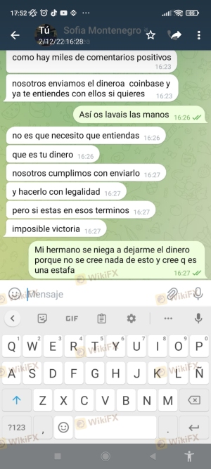 Sofía Montenegro 负责所有与转账相关的事情,前 250 和其他 1500。我产生了 24,000 并要求我 5,000 欧元兑换它,因为她说这是逃税......我失去了一切