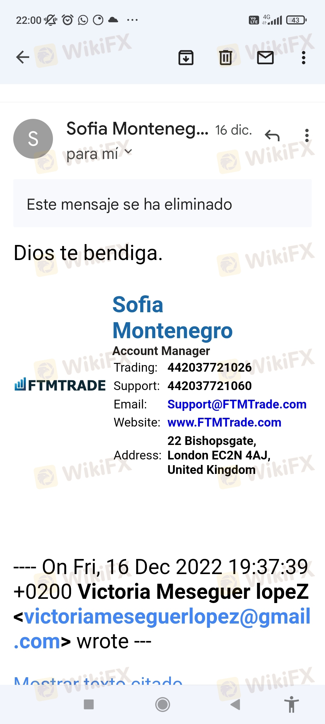 Sofía Montenegro fue la que se encargó de todo lo referente a las transferencias,la primera 250 y la otra 1500.genere 24000 me pedía 5000€ para rescatarlo porque decía que era evasión impuestos..lo he perdido todo