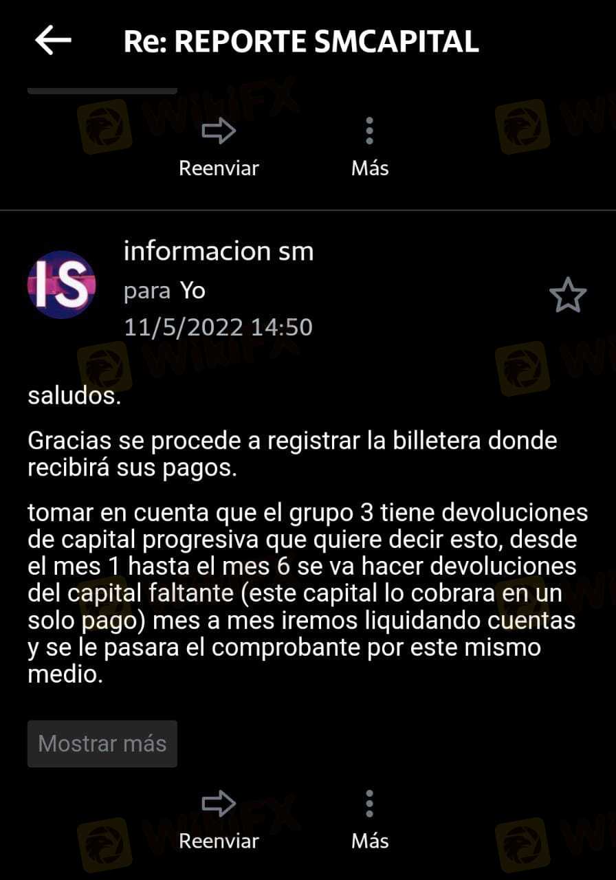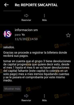 先生们早上好 SM CAPITAL MARKETS我的请求是您的帮助,以便能够撤回我在贵公司所做的投资,根据您迄今为止发布的规定和指南,在这方面没有任何消息或通知帮助我,一定要有您的帮助,我先感谢您。