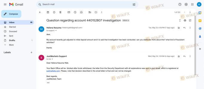 5月23日,随着市场向我的方向发展,Justmarket拿走了我所有赚取的利润,并将我的账户调整回初始存款。不久之后,他们给我发了一封电子邮件,说他们非常不专业的行为的原因是我从事欺诈活动,并且使用专家顾问进行合法交易,我没有从我的利润中提取一分钱。我强烈建议大家远离这个代理,因为他们不想让你获利。