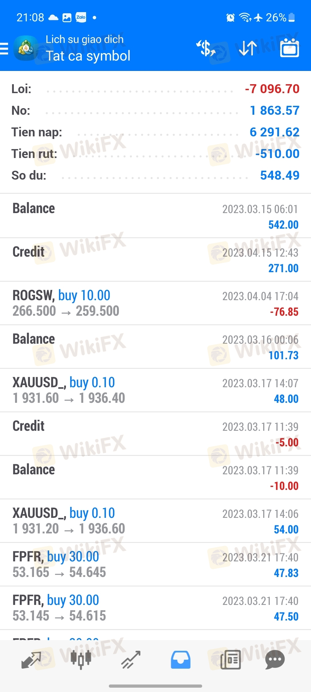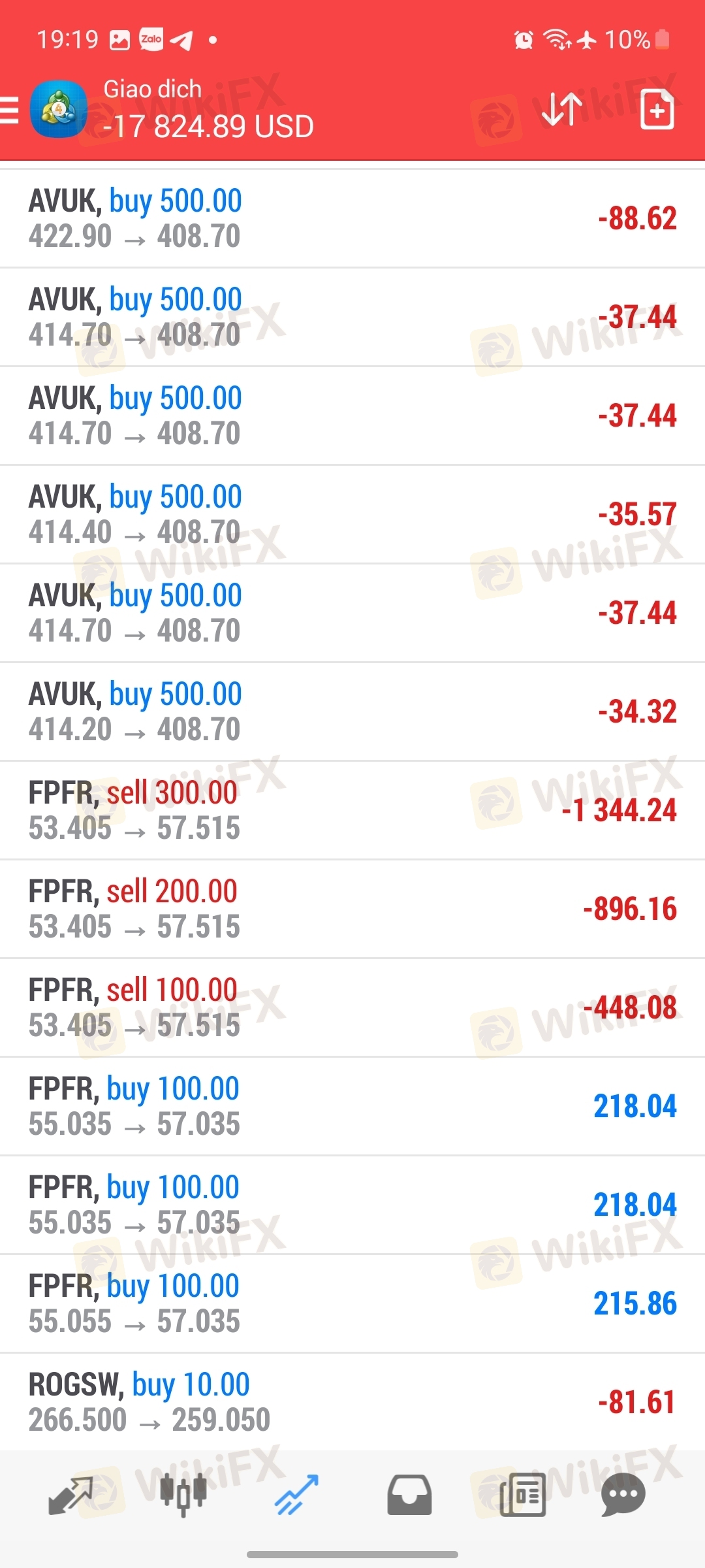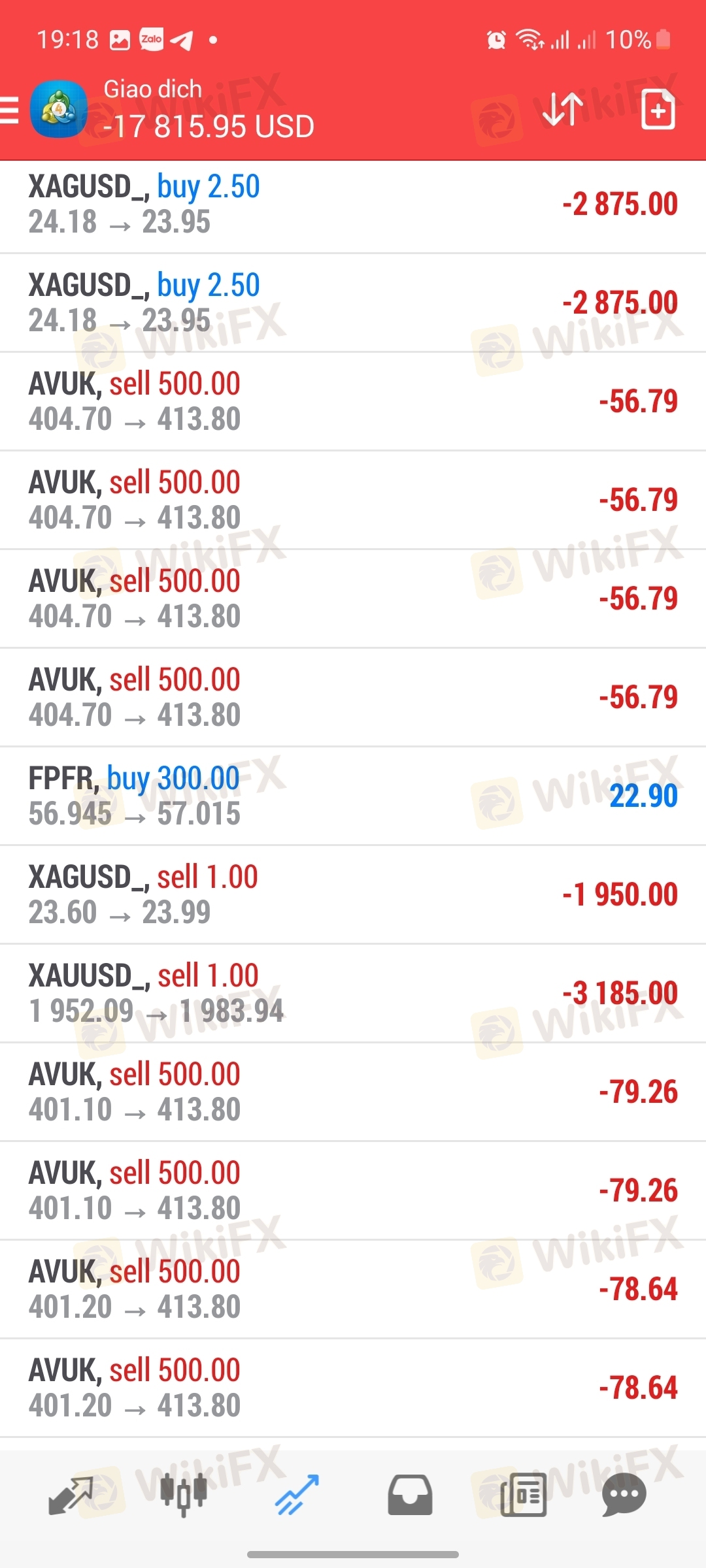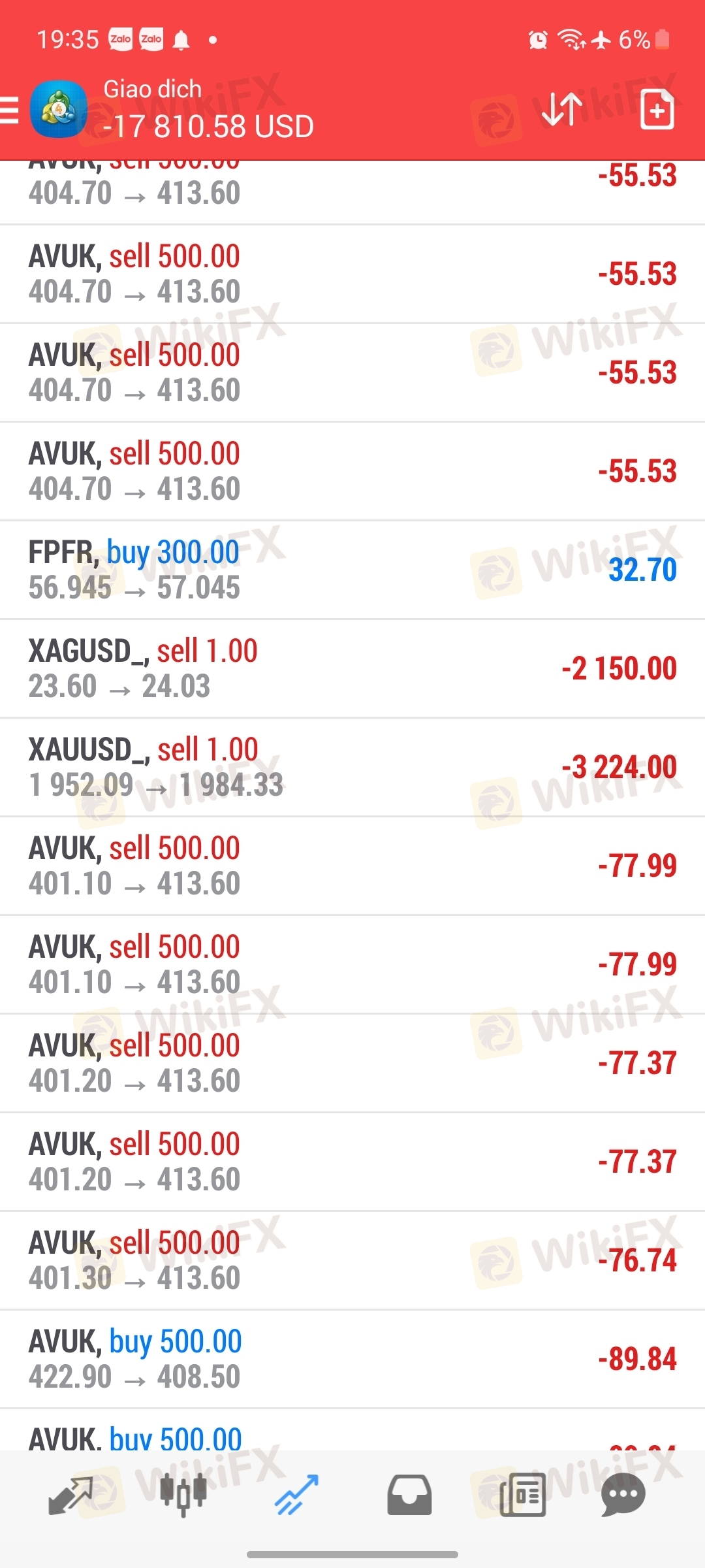 Nhân viên báo lệnh cho khách nhưng cứ cao đặt lệnh buy, thấp đặt sell đi ngược thị trường để cho âm cho cháy tài khoản. tôi mất 4500usd cho bọn Broker này. mọi người hãy cảnh giác