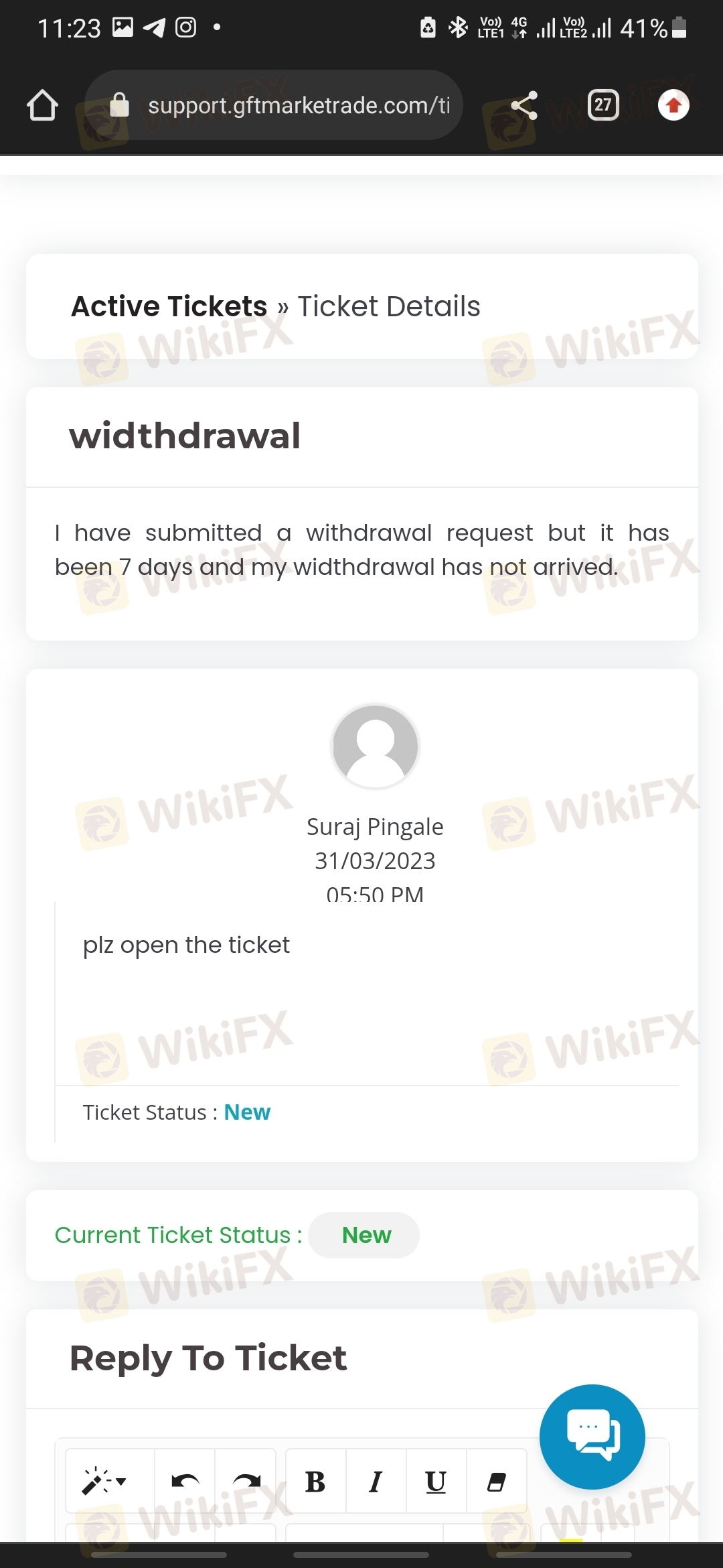 I have put a withdrawal request of 100 dollars to this broker. Their policy is that if the withdrawal does not come within 48 hours, it will come within 7 days. But still my withdrawal is not completed. No