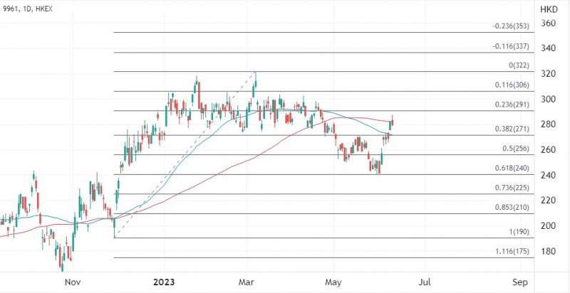 携程昨日股价在绩后造好,高开升逾2%创一个月高位,盘中涨幅扩大至近5%。此前作为蓝筹新贵,携程股价已经有部分涨幅跟进,自6月初低点以来已经累计回升17%。当前测试均线阻力,在突破之前可能先维持271至256港元的区间,突破则指向291至300港元阻力。