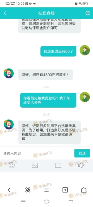 根据平台相关规定,现需要您缴纳反洗黑钱保证金,具体数额为您账户余额的40%,请您在48小时内完成缴纳,在您缴纳完毕反洗钱保证金后,您的资金将会由平台兑换完毕,在您收到您的资金后三天内未被中国大陆警方追责,该保证金将会如数退还,请您知悉 ,刚开始充个五百美金的时候赢了一点他还让我提现,后面我充多了不让提现,就让我出保证金
