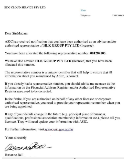 It can be seen that the means are written as "ASIC has received that you have been authorized..." From "ASIC has received," it can be seen that the main licensing company only needs to notify ASIC to issue an authorization license, and ASIC will assign an AR license code. From this, it can be seen that the management of AR licenses by this ASIC is not strict, and the quality of AR licenses depends entirely on the main licensing company. However, it is obvious that HLK is not a strictly authorized company, but only views this right as a means of profitability.