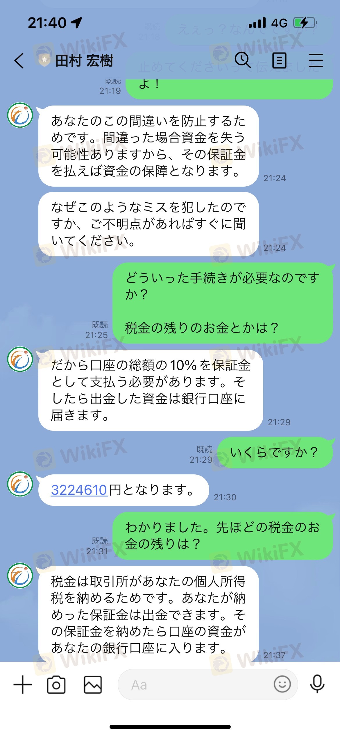 出勤時に税金20%、500万 次は出金口座番号が、違い保証金10%300万 次は違約取引を行った違約金30%1000万 出金全くできません。