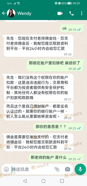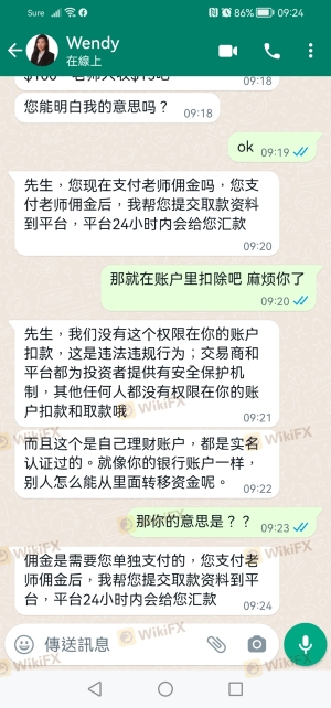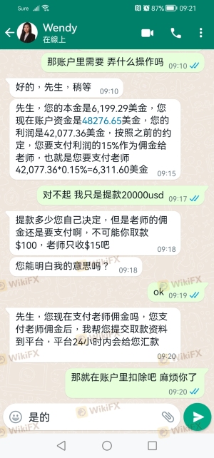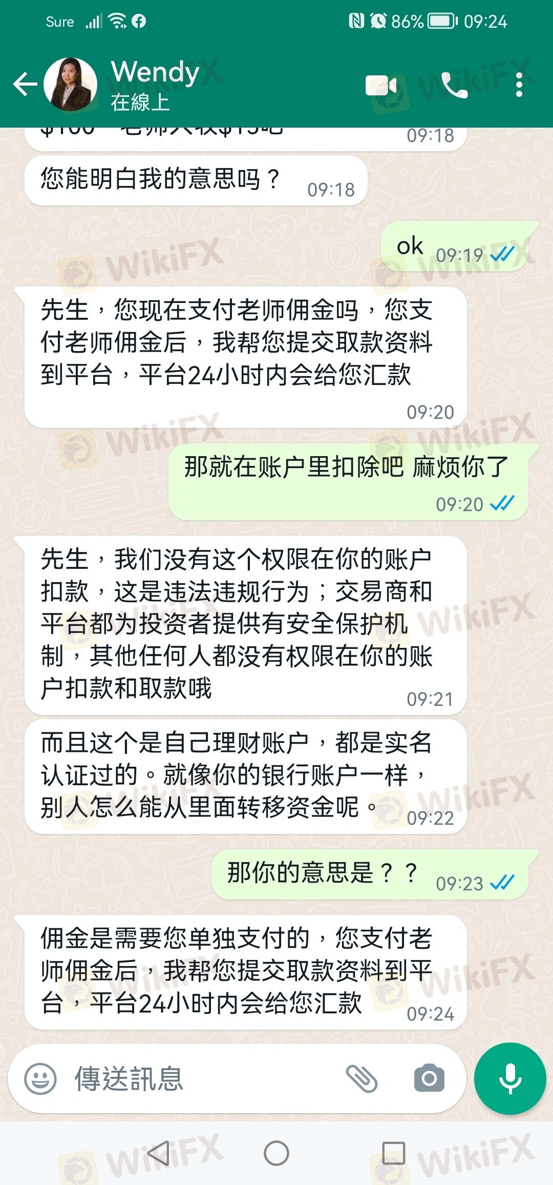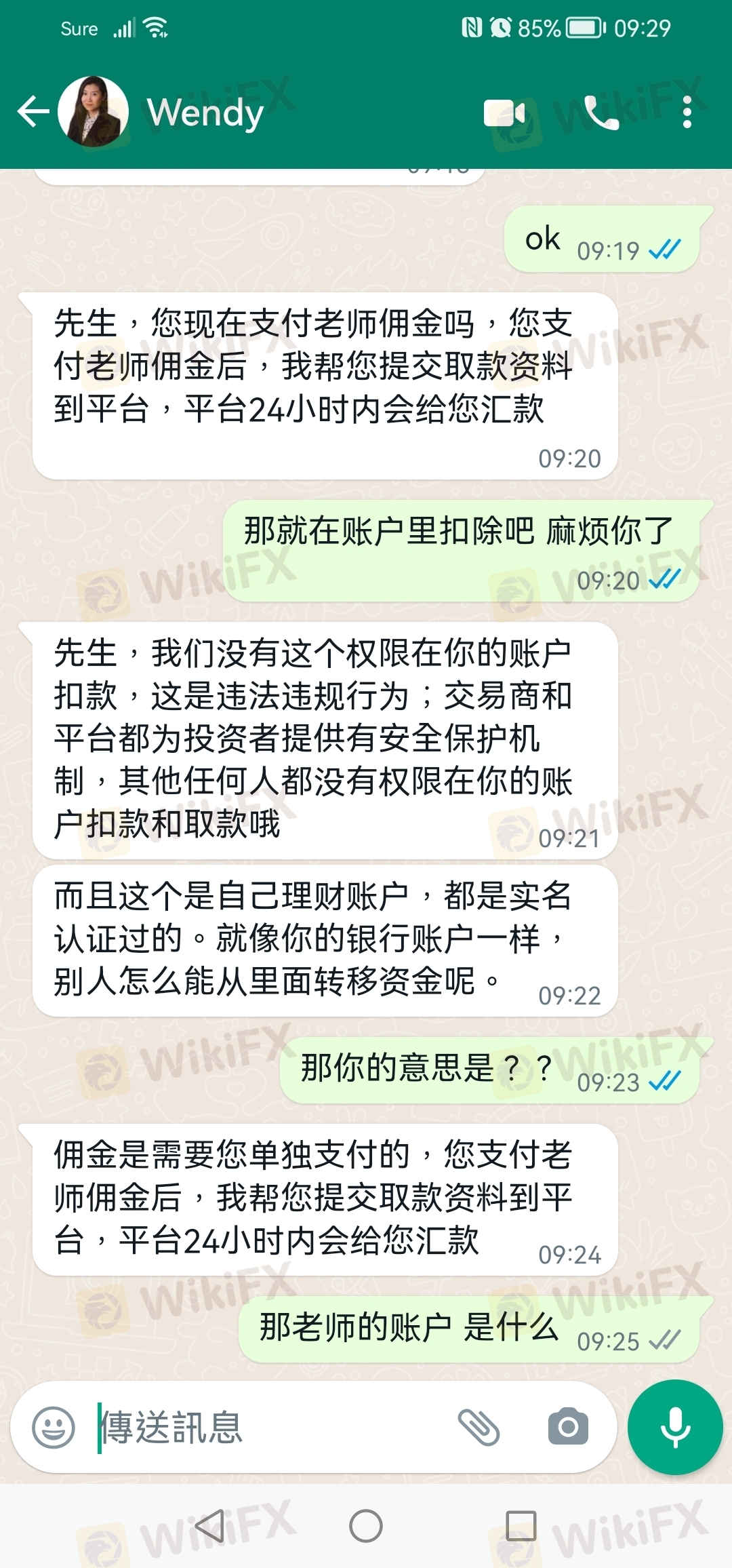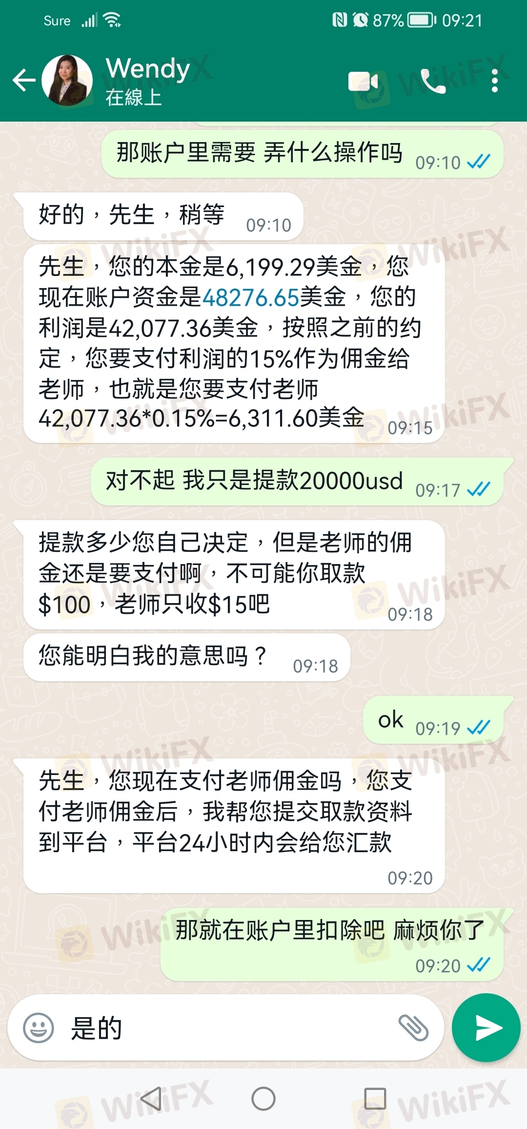 第一次取款 需要先支付老师的15%佣金 助理才可提交资料 给平台处理出金 不合理。后续的话就是在利润里面面扣除的